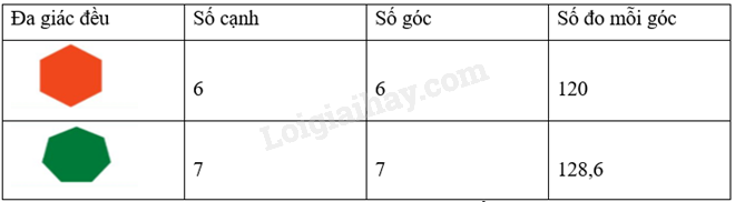 Quan sát từng đa giác đều và tìm số thích hợp vào ô trống trong bảng sau: