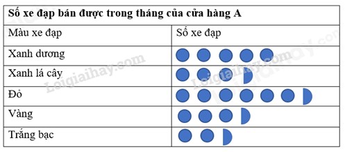 Bằng cách dùng biểu tượng Hình tròn đại diện cho 10 xe đạp và biểu tượng nửa hình tròn đại diện cho 5 xe đạp, em hãy vẽ biểu đồ tranh biểu diễn bảng thống kê sau: