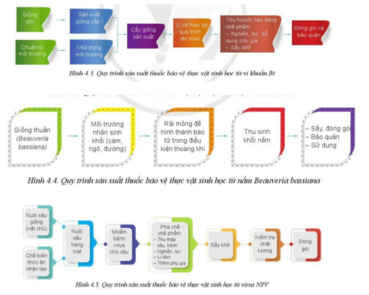 Quy trình sản xuất thuốc bảo vệ thực vật vi sinh học từ virus NPY tốn thời gian và sử dụng công nghệ nhiều hơn 2 quy trình kia. Trong 3 quy trình quy trình sản xuất từ vi khuẩn B1 đơn giản nhất so với 2 quy trình còn lại