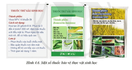 Quan sát hình 4.6 và cho biết tên thuốc, thành phần và tác dụng của thuốc bảo vệ thực vật sinh học.