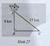 Suy ra \(B{C^2} = A{C^2} - A{B^2} = {15^2} - {9^2} = 144\). Do đó \(BC = \sqrt {144} = 12\left( {km} \right)\)