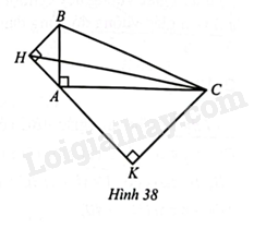 Hình 38 cho tam giác \(ABC\) vuông ở \(A\), \(AB = 5\)cm, \(AC = 12\)cm. Tam giác \(HAB\) vuông cân tại \(H\), tam giác \(KAC\) vuông cân tại \(K\).