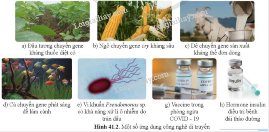 Hình 41.2 minh họa một số ví dụ về ứng dụng công nghệ di truyền trong thực tiễn. Hãy sắp xếp các ứng dụng này vào từng lĩnh vực tương ứng ở trên.
