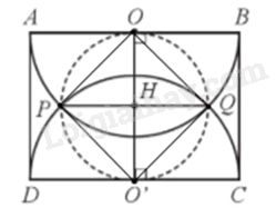Cho hình chữ nhật ABCD với AB = 10cm. Vẽ hai nửa đường tròn tâm O đường kính AB và tâm O’ đường kính CD cắt nhau tại P, Q. Biết rằng đường tròn tâm H đường kính PQ tiếp xúc với AB và CD (Hình 47). Tính diện tích phần chung của hai nửa đường tròn (O), (O’).