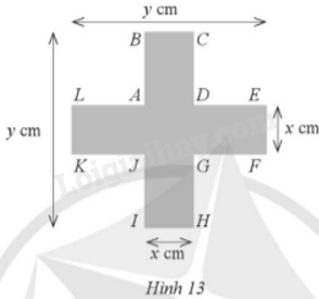 Một biển báo giao thông có một phần dạng hình chữ thập với các kích thước x (cm), y (cm) và (y = x + 25,AL = AB = CD = DE = FG = GH = IJ = JK)như hình 13.