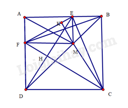 Cho hình vuông \(ABCD\). Lấy điểm \(M\) thuộc đường chéo \(BD\). Kẻ \(ME\) vuông góc với \(AB\) tại \(E\),\(MF\) vuông góc với \(AD\) tại \(F\).