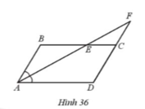Ở Hình 36 có AB song song cới CD, BC song song với AD. Tia phân giác của góc BAD cắt BC tại E và cắt tia DC tại F.