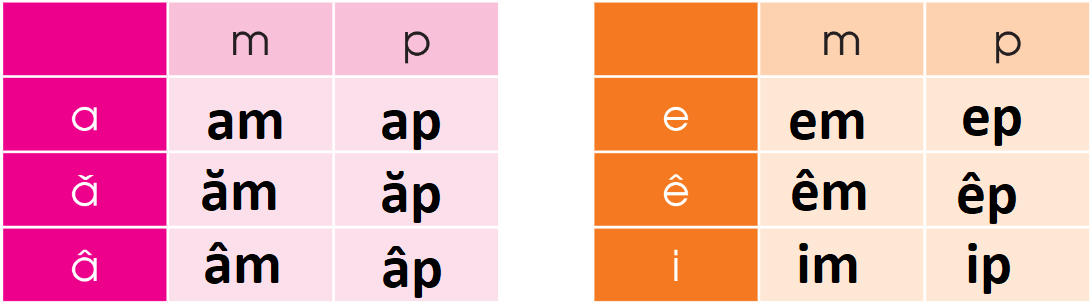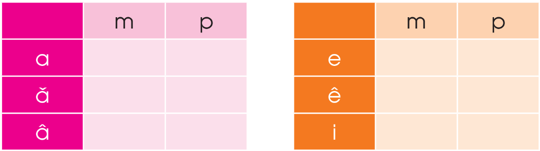 Ghép các âm đã học thành vần. Tìm tiếng có vần đó.