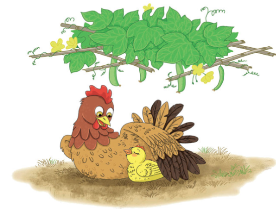 Gà mẹ khe khẽ ru. Mẹ ru êm quá. Gà nhí ngủ thiếp đi.