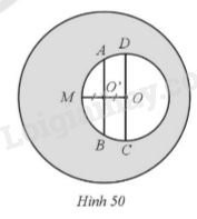 Cho đường tròn tâm O bán kính OM = 8 cm. Gọi O' là trung điểm của đoạn thẳng OM, vẽ đường tròn tâm O' bán kính 16 cm. Trong đường tròn (O), kẻ dây AB đi qua O', vuông góc với OM và đường kính CD song song với AB (Hình 50). Tính (làm tròn kết quả đến hàng đơn vị của centimét vuông):