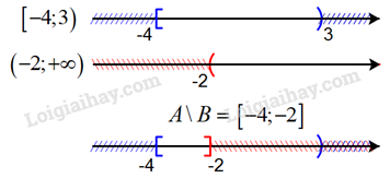Khi đó \(A\backslash B = \left\{ {x \in \mathbb{R}\left| { - 4 \le x < 3} \right.} \right\}\backslash \left\{ {x \in \mathbb{R}\left| {x > - 2} \right.} \right\} = \left\{ {x \in \mathbb{R}\left| { - 4 \le x < - 2} \right.} \right\} = [ - 4; - 2]\)