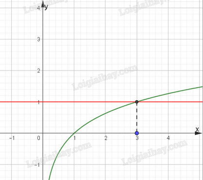 b) Khoảng giá trị của x mà đồ thị hàm số \(y = {\log _3}x\) nằm ở phía dưới trục hoành là \(\left( { - \infty ;1} \right).\)
