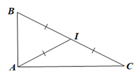 Cho tam giác ABC. Gọi I là trung điểm của BC. Tính số đo góc BAC, biết IA = IB = IC.