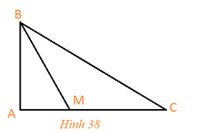 a) Đo các góc \(BAC,BMA,ACB\) ở Hình 38, từ kết quả đó cho biết góc nào là góc nhọn, góc tù và góc bẹt?