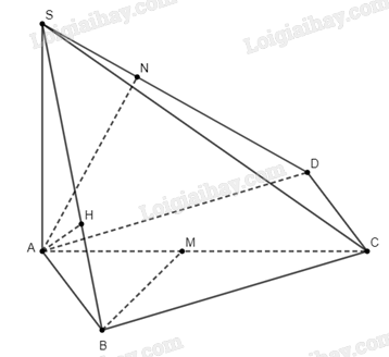 e) Lấy điểm \(D \in \left( {ABC} \right)\) sao cho \(ABCD\) là hình bình hành. Gọi \(N\) là hình chiếu của \(A\) trên \(SD\). Ta chứng minh \(AN \bot \left( {SCD} \right)\). Do \(AB\parallel CD\) nên \(AB\parallel \left( {SCD} \right)\). Mà \(SC \in \left( {SCD} \right)\) nên khoảng cách giữa \(AB\) và \(SC\) chính là khoảng cách giữa \(AB\) và \(\left( {SCD} \right)\)