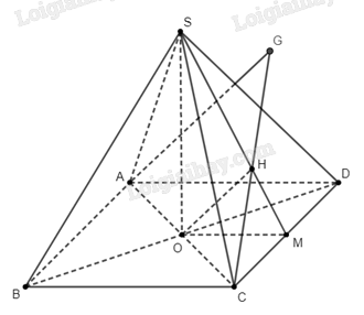 c) Gọi \(H\) là hình chiếu của \(O\) trên \(SM\). Chứng minh rằng \(H\) cũng là hình chiếu của \(O\) trên \(\left( {SCD} \right)\), từ đó suy ra khoảng cách cần tìm là đoạn thẳng \(OH\).