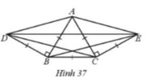 Cho Hình 37 có AB = AC = BC = BD = CE, \(\widehat {ABD} = \widehat {ACE} = 90^\circ \)