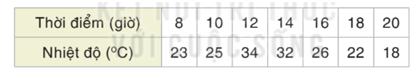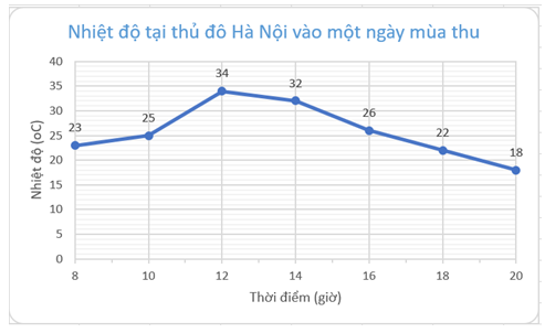 Bảng sau cho biết nhiệt độ tại thủ đô Hà Nội vào một ngày mùa thu.