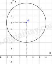 a) Vị trí tương đối của đường tròn tâm M, bán kính 3 với hai trục Ox và Oy;