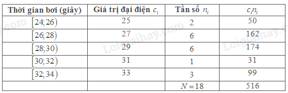 Số trung bình của mẫu số liệu là \(\overline x = \frac{{516}}{{18}} \approx 28,67\) giây