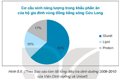 a) Hãy cho biết thành phần nào sinh năng lượng nhiều nhất trong khẩu phần ăn của hộ gia đình vùng đồng bằng sông Cửu Long.