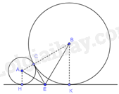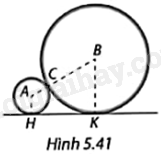 a) Bán kính đường tròn nhỏ là: \(AC = AH = \frac{6}{2} = 3cm\), bán kính đường tròn lớn là: \(BC = BK = \frac{{18}}{2} = 9cm\)