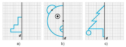 Em hãy hoàn thiện các bức vẽ dưới đây để thu được các hình có trục đối xứng d.