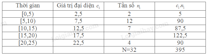 Vậy thời gian sử dụng Internet trung bình của 32 người được điều tra là 12,34 giờ.
