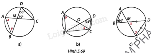 Tính các số đo x và y trong mỗi trường hợp ở Hình 5.69.