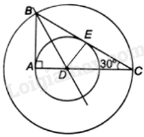 Vì BD là phân giác của góc ABC, AD vuông góc với AB tại A, DE vuông góc với BC tại E nên \(AD = DE\). Do đó, đường tròn (D; DA) tiếp xúc với cạnh BC tại E.