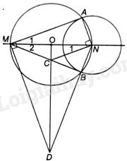 Do đó, \(\widehat {DMN} = \widehat {DNM}\) nên tam giác DMN cân tại D, suy ra D nằm trên đường trung trực CO của MN.