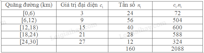 Bảng 5.13 trình bày dữ liệu liên quan của 160 chuyến xe mà một tài xế đã hoàn thành trong một tháng. Xác định quãng đường trung bình của các chuyến xe mà tài xế này đã thực hiện trong tháng đó.