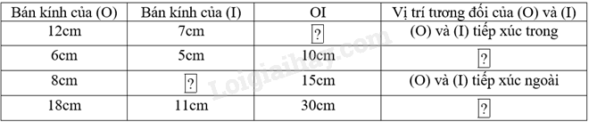 + Nếu \(d = R - r\) thì hai đường tròn tiếp xúc trong.