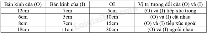 + Nếu \(d > R + r\) thì hai đường tròn ngoài nhau.