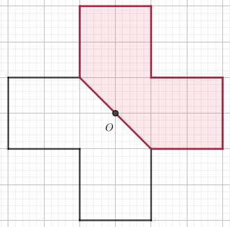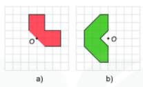 Vẽ lại các hình sau vào giấy kẻ ô vuông rồi vẽ thêm để được một hình nhận điểm O là tâm đối xứng.
