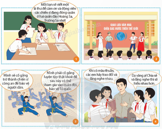 - Em hãy nhận xét về những hành động, việc làm tham gia bảo vệ hòa bình của nhân vật trong các hình ảnh trên.