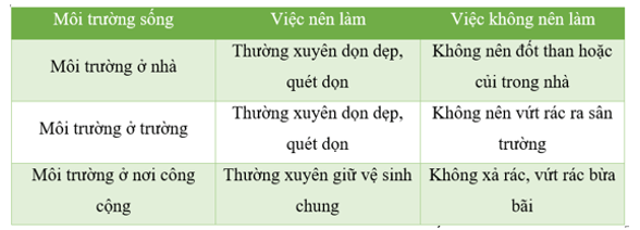 Em hãy chỉ ra những việc nên làm và không nên làm để bảo vệ các loại môi trường sống.