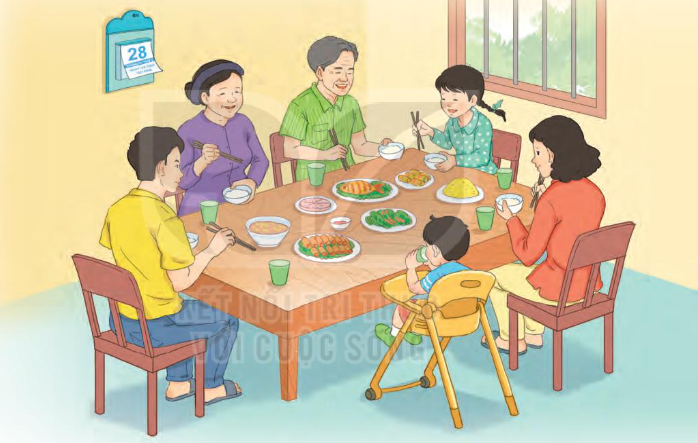 Bài đọc kể về một bữa cơm gia đình nhân dịp Ngày Gia đình Việt Nam. Cả nhà quây quần bên nhau, làm cho bữa cơm trở nên tuyệt vời. |