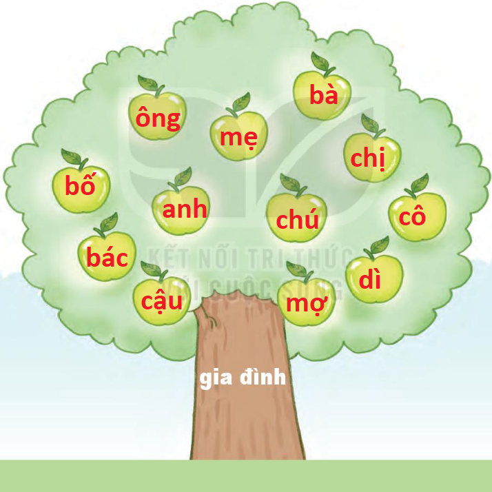 Gắn thẻ từ chỉ người thân trong gia đình lên “Cây gia đình”.