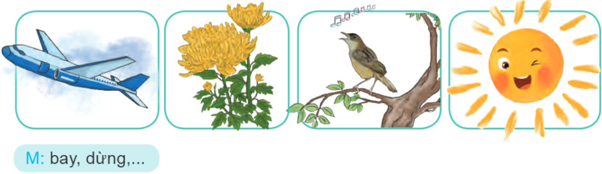Tìm động từ chỉ hoạt động, trạng thái của mỗi sự vật trong hình: