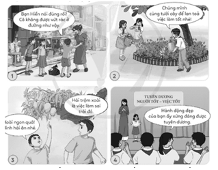 - Hình 1: Việc các bạn bảo vệ bạn Hiền khi bạn Hiền nói với cô là không được vứt rác không đúng nơi quy định