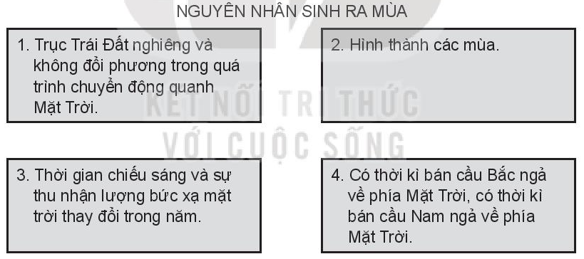 Sắp xếp thứ tự nguyên nhân sinh ra mùa sao cho đúng