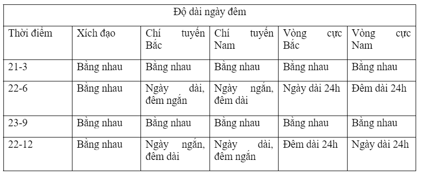 Đông chí (22-12) đến Xuân phân (21-3): mùa đông (BCB), mùa hạ (BCN)