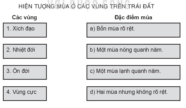 d. Bốn mùa biểu hiện rõ nhất ở vùng nhiệt đới.