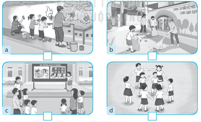 Đánh dấu X vào ô trống dưới những hình thể hiện hoạt động kết nối trường học với cộng đồng xã hội.