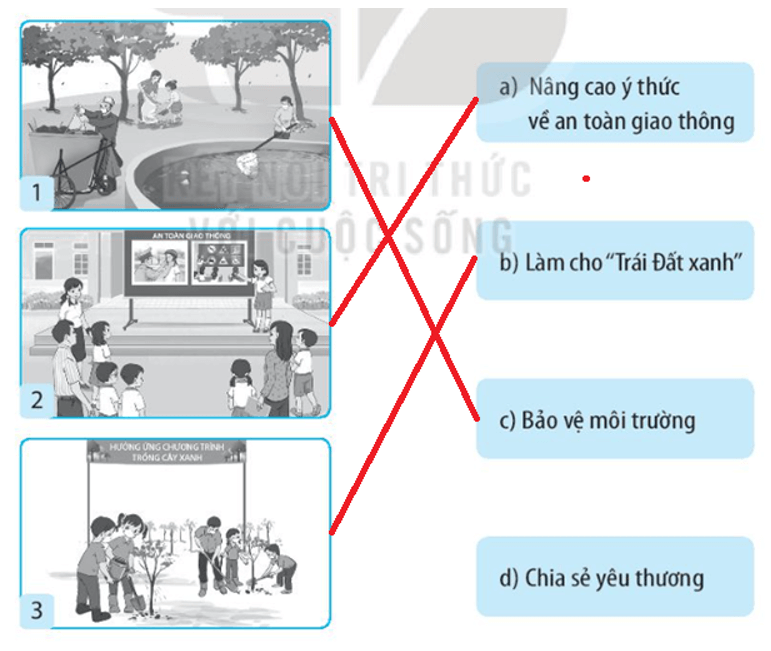 Nối hình với thẻ chữ cho phù hợp với ý nghĩa của các hoạt động.
