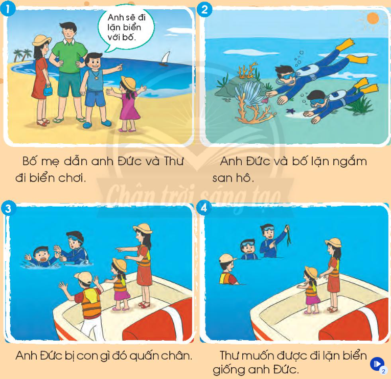 - Tranh 4: Thư muốn được đi lặn biển giống anh Đức.