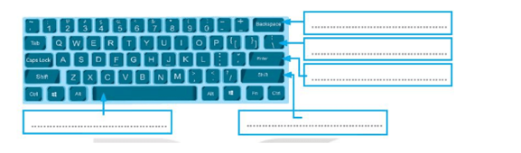Viết tên các hàng phím trong khu vực chính của bàn phím.