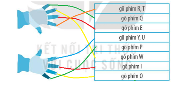 Hãy nối mỗi ngón tay với một ô có nội dung tương ứng để gõ các phím của hàng phím trên đúng cách.