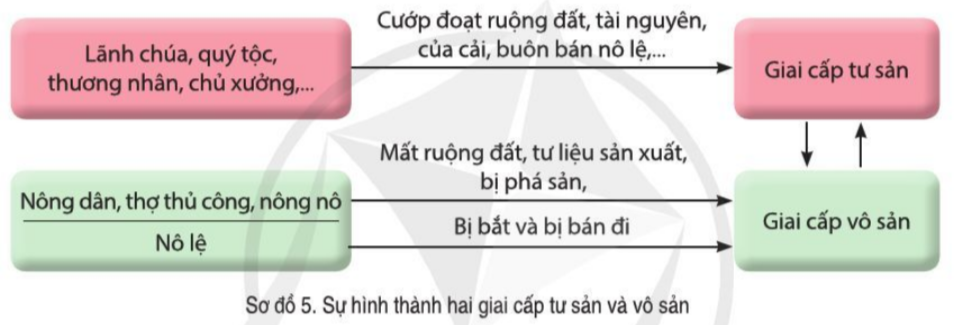 Đọc thông tin và quan sát sơ đồ 5, hình 5, hãy cho biết sự hình thành phương thức sản xuất tư bản chủ nghĩa. Theo em, mối quan hệ chủ yếu giữa giai cấp vô sản và giai cấp tư sản là gì?